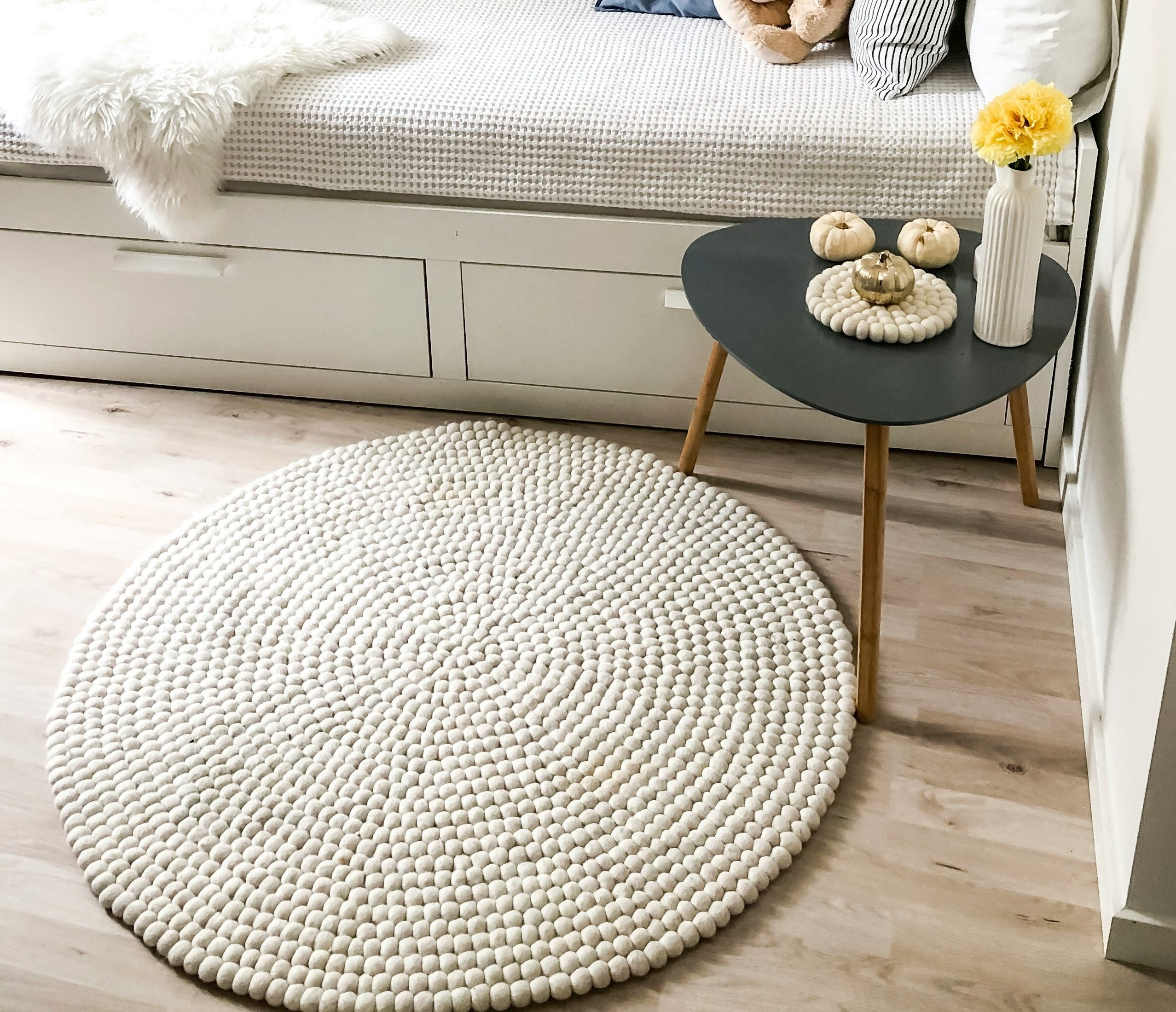 A rug anchors your room and adds texture. K-drama bedrooms usually feature quiet, subtle rugs:
